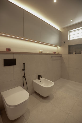 Les nuances sable, chaleureuses et accueillantes, transforment cet espace en un véritable havre de paix.